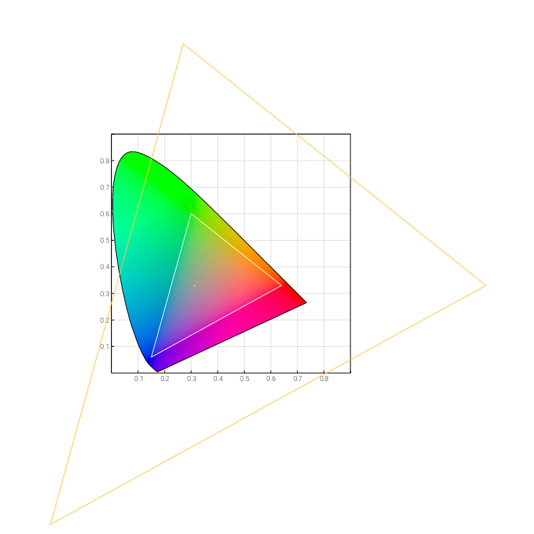 the sRGB gamut and if the area of its gamut is